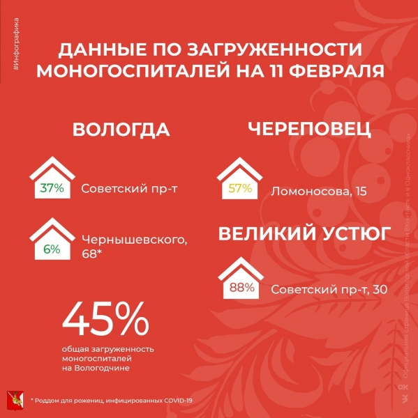 Моногоспитали Вологодской области заполнены на 45%