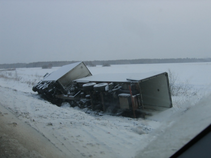 перевернулся большегруз. Фура до сих пор находится в кювете.