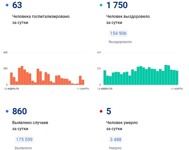 За месяц число новых случаев, фиксируемое за сутки, значительно сократилось. В середине февраля был поставлен антирекорд – 2650 заболевших.