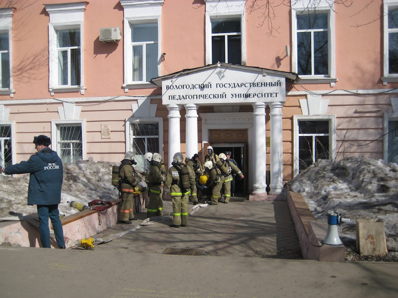 Условный пожар тушили сотрудники МЧС в вологодском педуниверситете