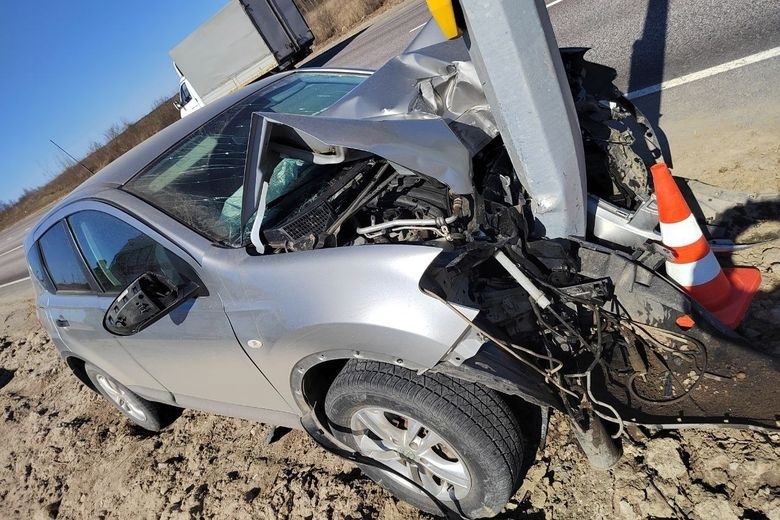 Водитель иномарки на большой скорости врезался в столб на трассе