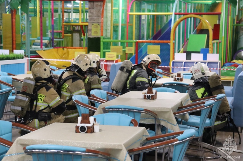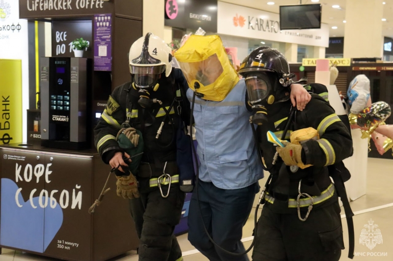 Условный пожар начался в детской игровой комнате торгового центра. После сигнала об эвакуации посетители и сотрудники вышли на улицу, но нескольким людям все-таки понадобилась помощь МЧС. Звенья газодымозащитной службы эвакуировали вологжан в кислородных масках по лестницам. С балкона посетителей спускали вниз с помощью пожарной лестницы. Условных пострадавших передали прибывшим на место медикам, им была оказана первая помощь, в том числе психологическая.