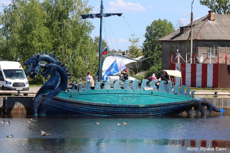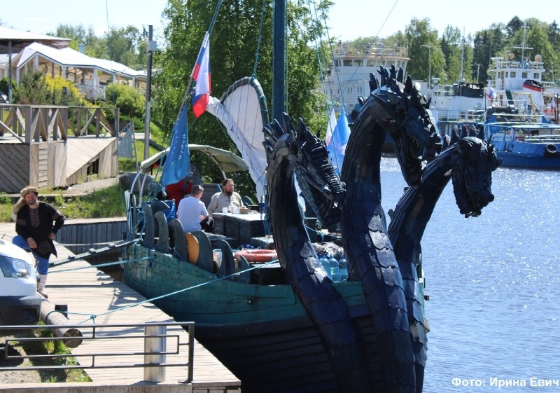 Древнерусская ладья "Змей Горыныч" была построена карельскими мастерами. Шхуна выдержала экзамен на прочность, пробороздив реки, озера и моря в течение двух лет. Накануне команда исследователей причалила в Вытегре. Участники экспедиции рассказали, что поход был удачным, они нашли то место, которое арабы в далеком IX веке называли "островом русов".