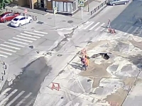 На улице Батюшкова напротив ЦУМа обрушилась дорога