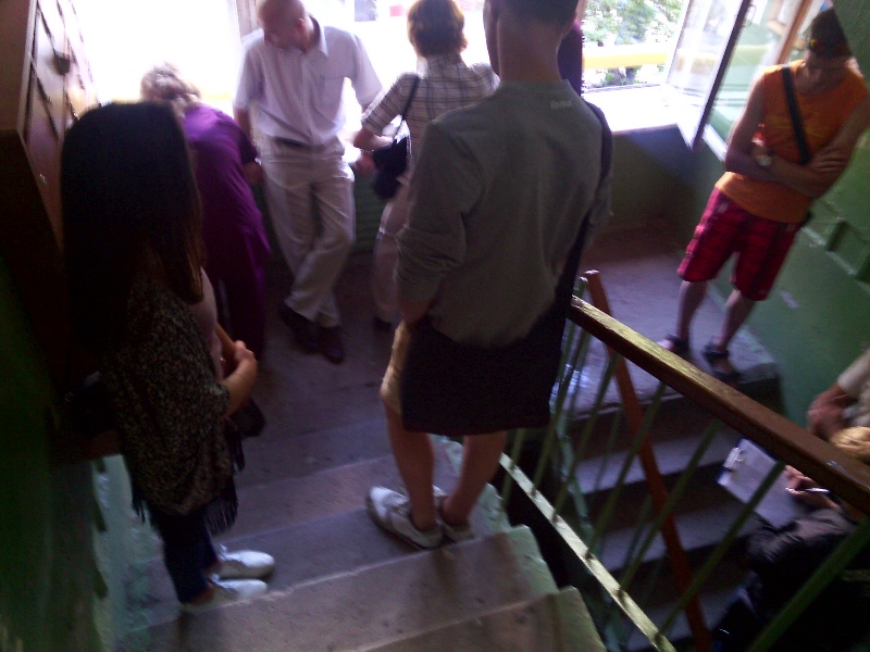 Как только Антон узнал от супруги о происходящем, он тут же отменил раскопки и поехал домой переодеться, а затем собирался в больницу «спасать» жену. Зайдя в подъезд и поднимаясь в свою квартиру, мужчина увидел огромное количество людей, на первом этаже стояли даже полицейские. Он спокойно и беспрепятственно зашёл к себе домой. Уже из дома он обзвонил своих друзей и знакомых и попросил их прийти к нему с фотоаппаратами и видеокамерами, чтобы запечатлеть весь процесс. За 20 минут, которые мужчина находился в своей квартире, к нему в дверь никто не стучал и не звонил. Единственное, что кто-то выключил электричество. Взяв свой компьютер и папку с документами, Антон пошёл в больницу к жене.