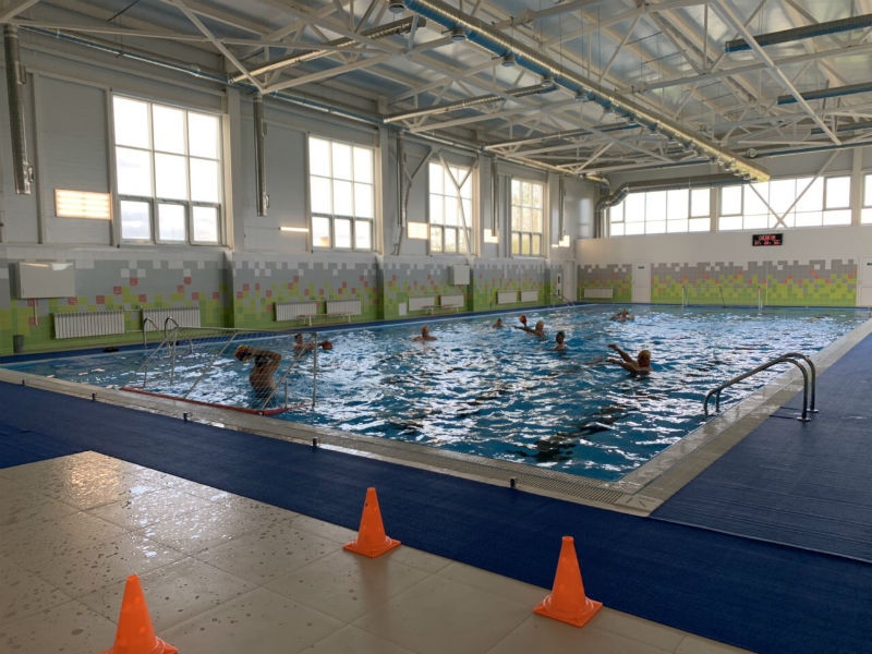 Строительство бассейна с 5 дорожками длиной 25 метров каждая и глубиной почти 1,5 метра началось в октябре прошлого года. Для местных жителей это стало большим подарком, потому что желающих заниматься водными видами спорта много, да и просто желающих расслабиться после работы немало. А для того, чтобы потренироваться или окунуться в теплую воду бассейна приходилось ездить за 20 км в Белый Ручей.
