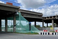 Проезжую часть оградили от летящих камней во время ремонта путепровода