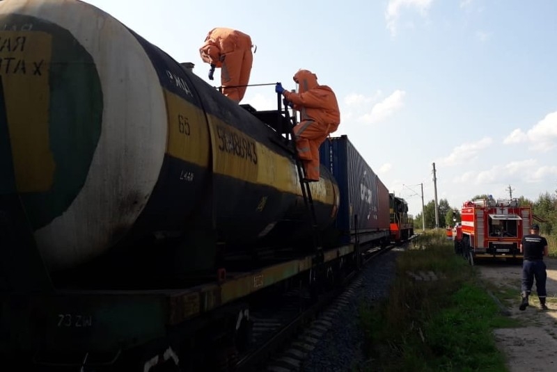 Опасное вещество лилось через клапан из цистерны товарного поезда, которая прибыла из Буя Костромской области.