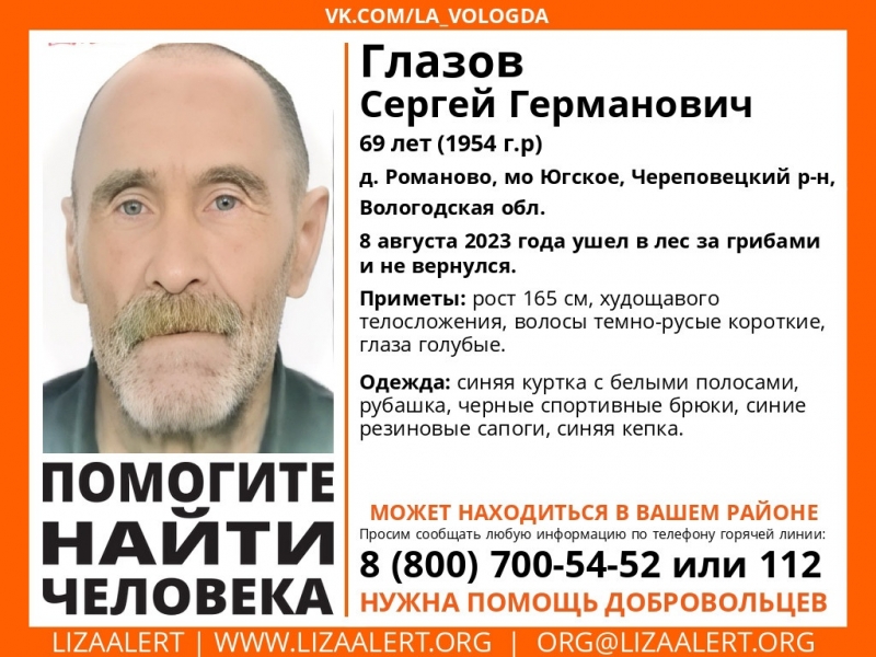 Отыскать пожилого человека пока не удается. 69-летний мужчина отправился за грибами из деревни Романово Череповецкого района.