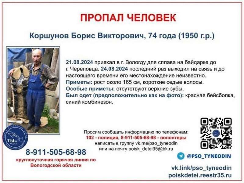 Мужчине 74 года, но он здоровый, крепкий человек. Последний раз Борис позвонил родным 24 августа. С тех пор – тишина. Стоит отметить, что ЧП на воде в это время зафиксировано не было.