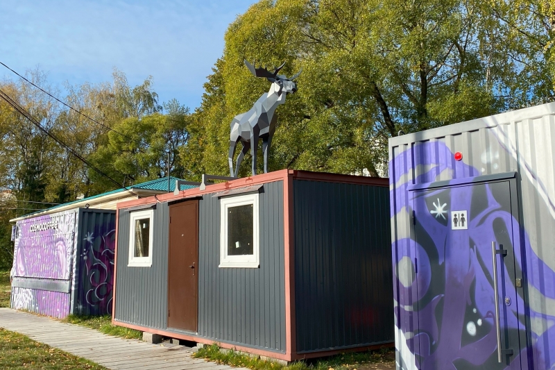 В скейт-парке «Яма» установили статую лося. Раньше она стояла на территории Кремля. А вот теперь находится на одном из боксов парка. Автор фигуры Антон Юнин, победитель фестиваля «Город ремесел».