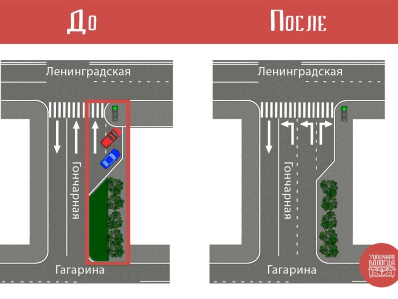 В Вологде в рамках ремонтных работ на улице Гончарной перенесли светофор, который стоит с правой стороны при выезде на Ленинградскую. Теперь он расположен ближе к магазину на улице Гончарной,1.