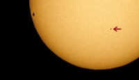 Середина этого дефиле наступит в 18:20. В телескопе будет видно, как темный кружок неспешно движется по диску Солнца.