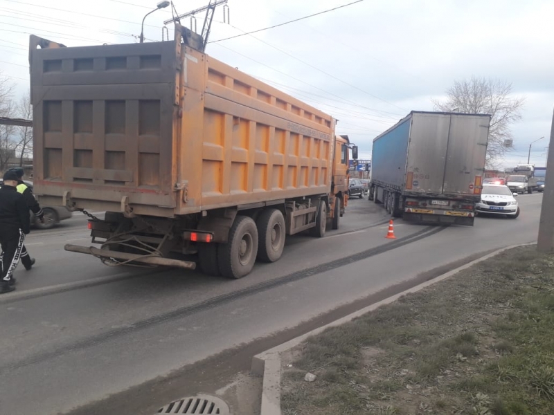 На Северном шоссе столкнулись легковушка и грузовик. По предварительным данным, автомобиль "Черри" при выезде с заправки врезался в "Сканию".