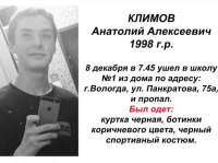 Анатолий Климов ушел в школу утром 8 декабря и до сих пор ничего не известно о его местонахождении. Школа находится по адресу улица Панкратова, 75А. Мальчик был одет в черную куртку и черный спортивный костюм, на ногах были коричневые ботинки.