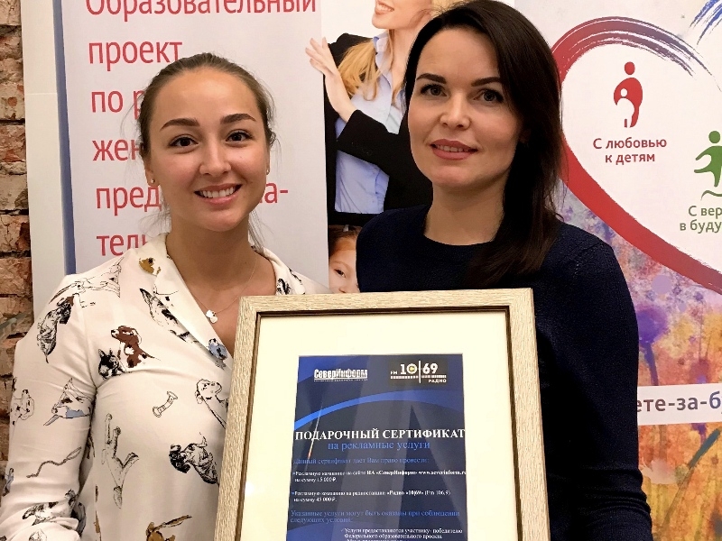 Также сертификат на проведение рекламной компании от вологодской радиостанции «Радио «10|69» и информационного агентства "СеверИнформ" на сумму 60 000 рублей вручила Анне Тишко за предоставленный проект семейного образовательного центра «Селектика» директор "Радио 10|69" и ИА "СеверИнформ" Людмила Виноградова.