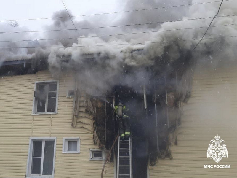 UPD: По предварительным данным, из дома эвакуировалось пять человек. Погибшая - 73-летняя жительница соседнего дома, пришедшая к знакомой. В МЧС считают, что причиной трагедии стала оставленная без присмотра печь в квартире на первом этаже.