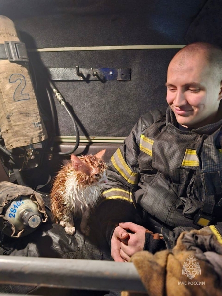 Во время проливки сотрудники МЧС услышали мяуканье. Рыжий кот от испуга забрался на чердак пристройки, где просидел несколько часов. Хозяин кота лишился жилища и попросил пожарных приютить животное. Так кот оказался в пожарной части. Он быстро освоился, пояснили в пожарной службе. А потом старший пожарный второй пожарно-спасательной части Владимир Яшенев забрал Рыжика к себе домой. Кот уже стал настоящим членом семьи, сообщает ИА «СеверИнформ».