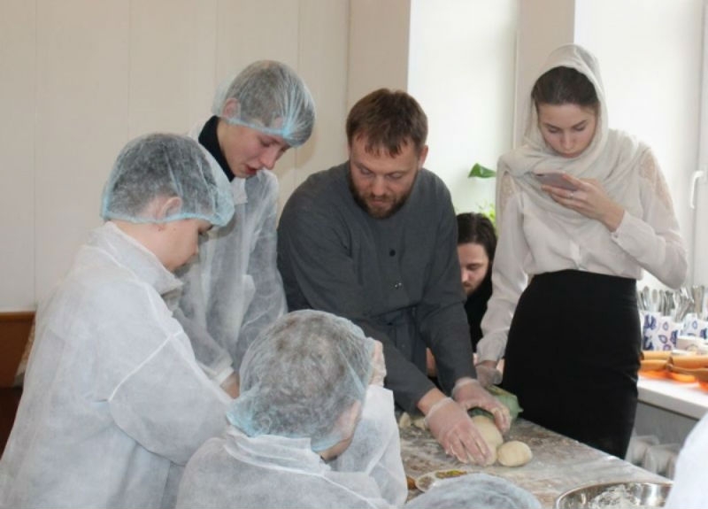 Участники проекта учились делать на обед манты - одно из основных блюд азиатской кухни. Настоятель собора Рождества Пресвятой Богородицы Вологды иерей Сергий Викин рассказал и показал, как правильно готовить тесто и делать мясную начинку, рассказали в вологодской митрополии. Юные кулинары распределили роли. Кто-то чистил и резал лук, а кому-то досталась более сложное дело - подготовить фарш и тесто.