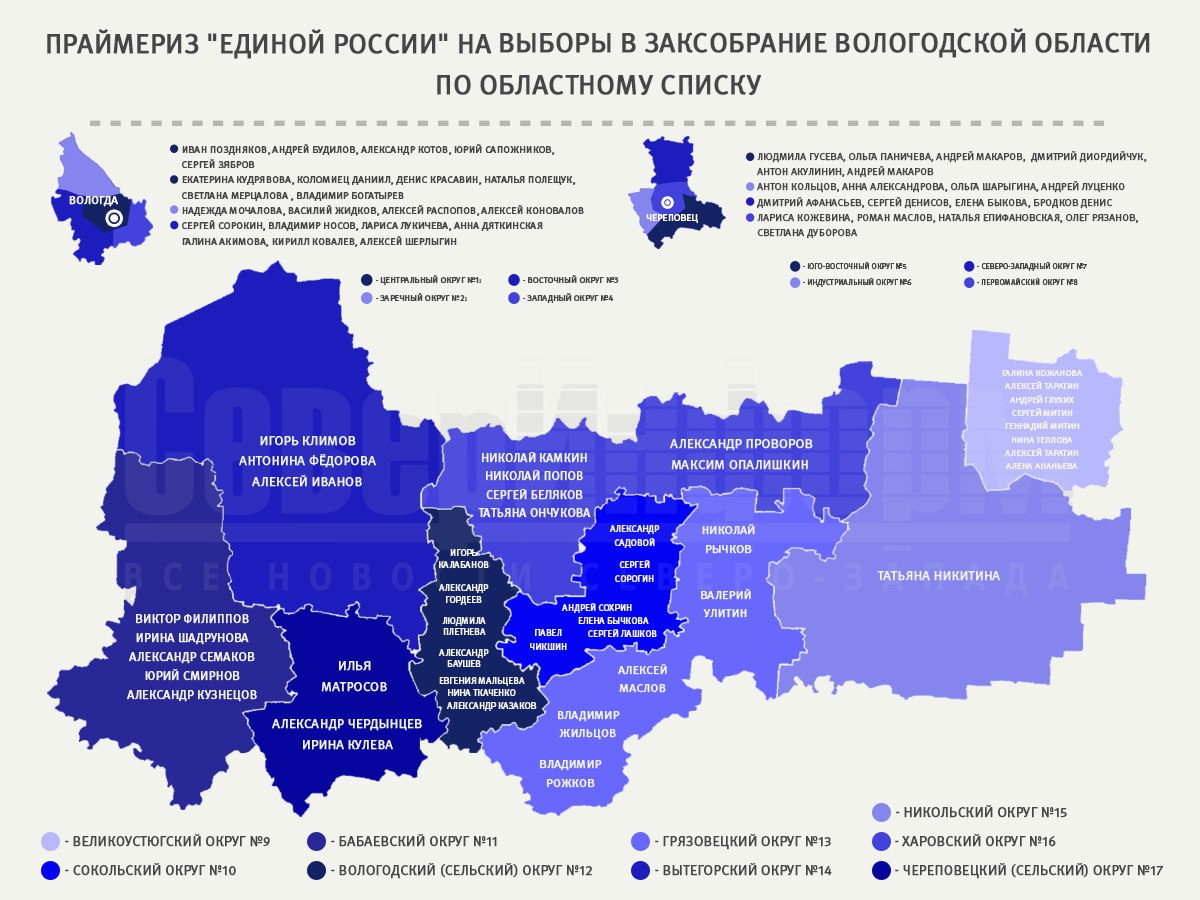 Через праймериз предстоит пройти как тем, кто намерен стать официальным кандидатом от «Единой России» на выборах в Госдуму РФ, так и желающим попасть в Законодательное собрание Вологодской области.