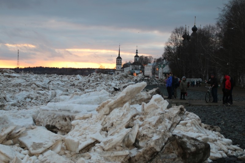 По прогнозам специалистов, Сухона должна вскрыться уже на днях. Уровень воды в ней поднимается в день примерно на 40 см, река уже сменила направление.