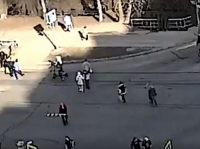 Происшествие зафиксировали камеры видеонаблюдения. Человек на самокате, пересекая перекресток на зеленый для пешеходов свет, сбил ребенка, который переходил дорогу, соблюдая правила. После ДТП самокатчик уехал.