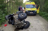 По данным ОГИБДД, водитель управлял незарегистрированным квадроциклом. По какой-то причине транспортное средство опрокинулось. Водитель скончался. Пострадал и его 42-летний пассажир. С травмами его госпитализировали.