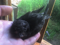 «Мы подошли к дому, а пока разговаривали с соседкой, птенец все пищал, - рассказывает Наталья. - Я решила его осмотреть. Поняла, что птенец замерз, ослаб и хромает на одну лапу. В клетке лежал хлеб и стояла баночка с водой. Я поняла, что птенец сам есть еще не может. Я стала уговаривать детей отдать его мне. Я знала, что если он останется там, он умрет. Забрав птенца домой я первым делом решила накормить его, и он очень жадно начал хватать еду с руки. Я залезла в Интернет и посмотрела, что это за птица. Оказалось, что передо мной маленький стрижонок».