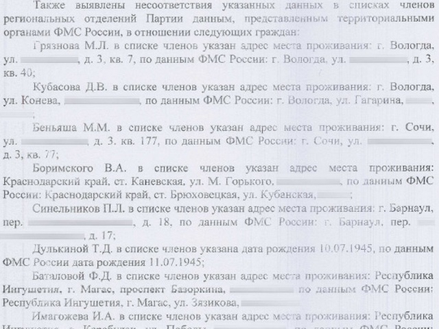 Всего в «черном списке» минюста четверо вологжан. Двое из них — Д.В. Кубасов и М.Л. Грязнов неправильно указали адрес своей регистрации. По всей видимости, речь идет о ближайших сподвижниках бывшего депутата ЗСО Евгения Доможирова — Денисе Кубасове и Анатолии Грязнове (инициалы второго, скорее всего, являются опечаткой сотрудников Министерства юстиции). Кстати, среди тех, кто указал ложные сведения, оказался и сам лидер региональных «навальновцев» Евгений Доможиров. В качестве места жительства он указал квартиру в одном из домов на улице Псковской. Между тем, по данным Федеральной миграционной службы, Доможиров уже снялся с регистрационного учета.