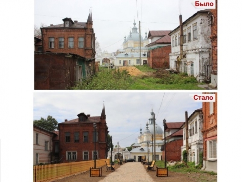 В следующем году здесь планируется посадить декоративные растения и установить информационные стенды, которые расскажут об истории зданий и их владельцах.