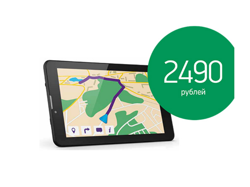 водителя. Покупателю предлагается готовый комплект, в который входит само устройство по цене 2 490 рублей, автомобильная зарядка и держатель для планшета, а также тарифная опция «