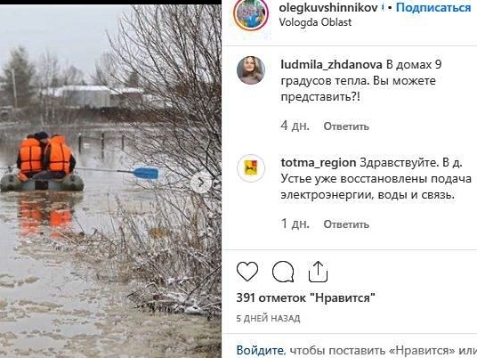 Олега Кувшинникова эксперты отметили в числе лидеров. Среди последних публикаций - фото и видео, касающиеся паводка в Вологодской области. Также среди постов было поздравление полицейских с профессиональным праздником.