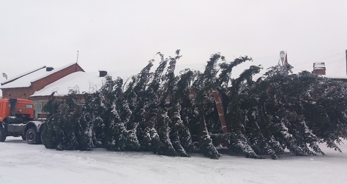 И первая новогодняя елка страны – красавица: 20 метров в высоту, 6 метров в диаметре. Во время транспортировки дерева из леса, чтобы не сломать ветви в пути, пришлось прибегнуть к помощи ГИБДД и перекрыть улицы.