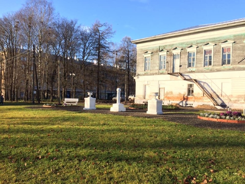 Это видно на старых фотографиях усадьбы. Эту архитектурную группу было решено воссоздать.