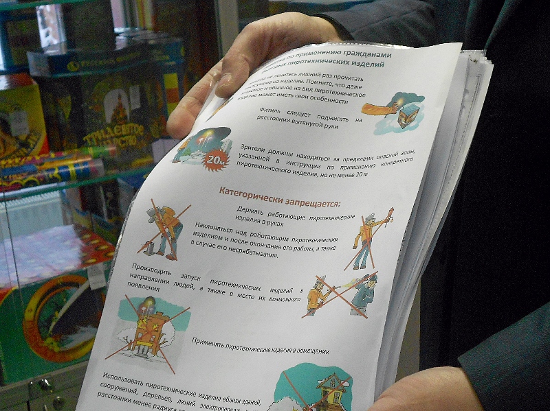 «Ко всей продукции должны прилагаться сертификаты с синей заверяющей печатью. Ксерокопии сертификатов не принимаются, - рассказал инспектор пожарного надзора города Вологды Виталий Тропов. - Сама продукция должна лежать на закрытой витрине, без доступа посетителей к товару. Пиротехнику нельзя продавать лицам младше 18 лет. Кроме того, продавцам следует предупреждать покупателей о правилах обращения с этой продукцией. В случае, если фейерверк оказался бракованным, его нужно поместить во влажное место. Ни в коем случае не следует разбирать пиротехнику и пытаться самостоятельно понять, в чем причина накладки. В противном случае петарда или салют могут взорваться прямо в руках».