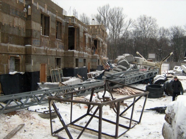 Кран упал на рабочих на стройке в Вологде