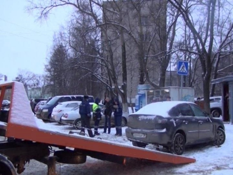 11 автомобилей вывезли на эвакуаторе в центре Вологды