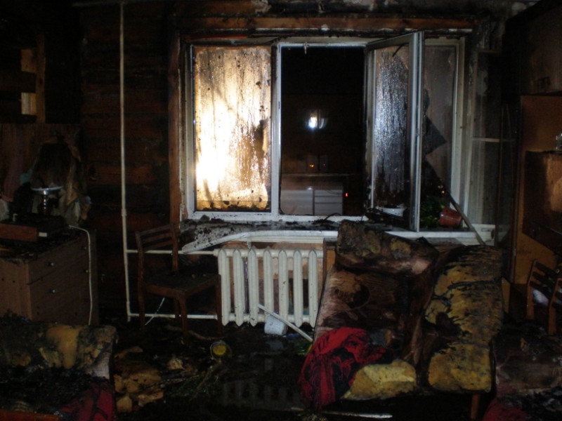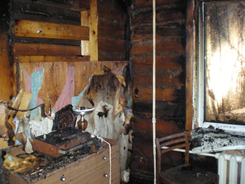 Огнем уничтожена внутренняя отделка имущества комнаты и квартира этажом выше