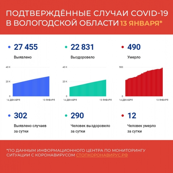 За сутки диагноз снят у 290 вологжан. На 13 января всего в области от коронавируса вылечился 22831 человек.