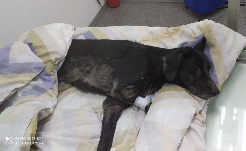В ветеринарной клинике состояние собаки описали медицинскими терминами: пиодермия (гнойное поражение кожи), кроваво-гнойные выделения из носа, непроизвольная дефекация, низкая температура (36 градусов), крайняя степень обезвоживания и истощения.