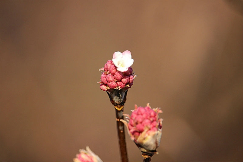"Калина боднантенская 'Charles Lamont' — садовый гибрид, происходящий от скрещивания калины Фарера и калины крупноцветковой. Цветет до появления листьев; зацветает очень рано, с первыми же зимними оттепелями, из-за чего цветки нередко повреждаются утренними заморозками", - рассказали "Новому Калининграду" в Ботаническом саду.