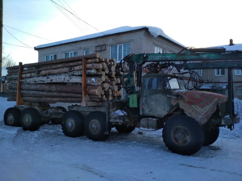 Бревна лиственных и хвойных пород перевозили на грузовике «Урал»