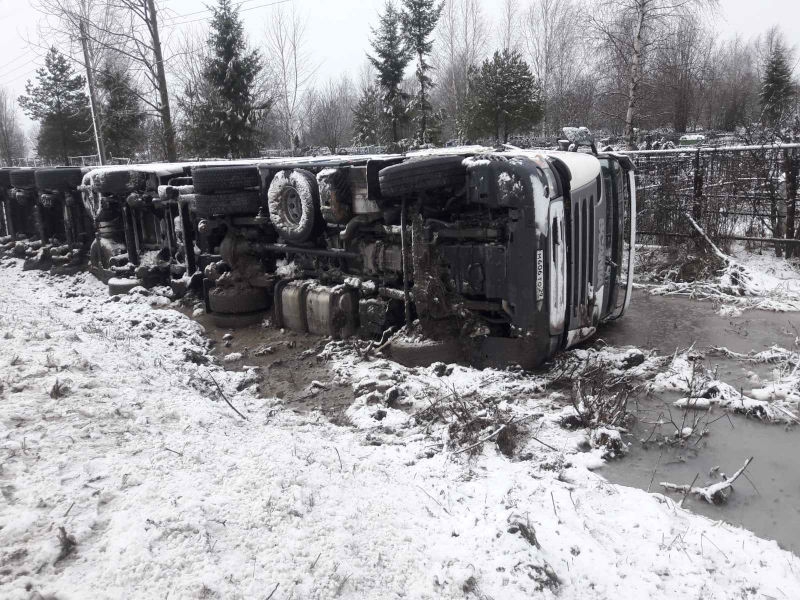 Как рассказали в областном управлении ГИБДД, скорее всего, водитель не справился с управлением - дорогу накрыло липким снегом. В результате грузовик перевернулся, частично перегородив трассу. В ДТП никто не пострадал.