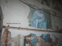 О том, что когда-то здесь был храм, сейчас напоминают лишь внутренние перекрытия и остатки фресок, которые чудом сохранились до наших дней. На реставрацию средств у колонии нет, но сохранить то, что осталось, во время строительства постараются. Все настенные изображения будут закрыты специальным коробом. А основу первого каменного строения используют в качестве основания для нового здания.