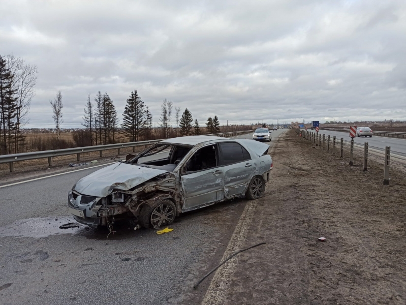 Машина врезалась в ограждение. Авария произошла около 15 часов в среду, 13 апреля, на трассе «Вологда – Новая Ладога».