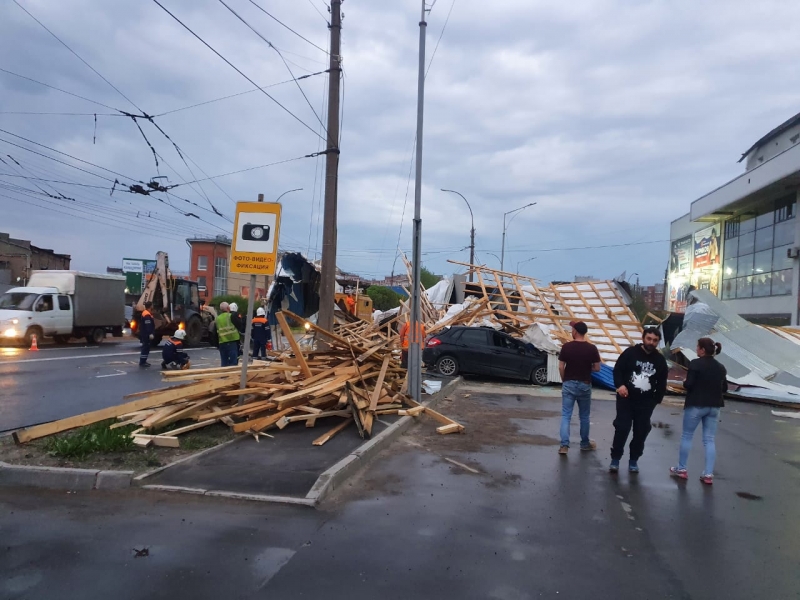 Порывы ветра вечером 13 мая достигали 21 метра в секунду. В результате в городе повалило деревья, оборвало провода и снесло крышу здания на Ленинградской, 97Б. Здесь располагается автосервис, фитнесс-центр, кафе, офисы. Площадь сорванной конструкции составило 350 квадратных метров. Такие данные сообщает областное ГУ МЧС РФ.