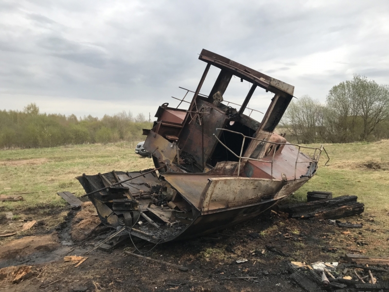 Заброшенное судно находилось в деревне Новое. Пожар произошел в 18:13 в четверг, 12 мая.