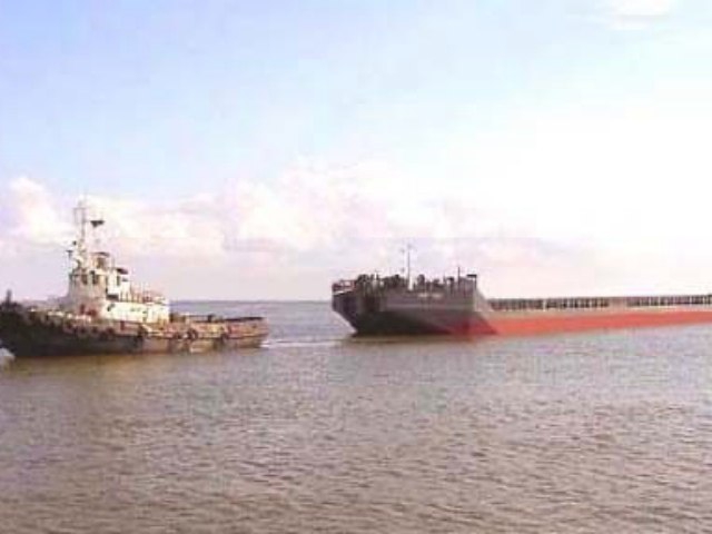 «Леонид Лисин» и буксир ОТ-823 с баржой. Оба судна столкнулись по касательной.