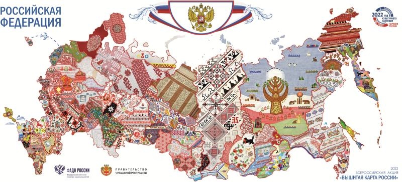 Напомним, специалисты выполняли вышивку на фрагменте полотна, где обозначены географические очертания того или иного субъекта. При этом использовали рисунки и символику, характерные для своего края. Размер получившейся картины — около 7 метров в ширину и более 3 метров в высоту, сообщает ИА «СеверИнформ».