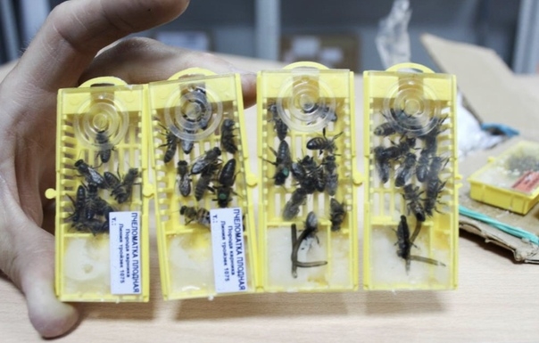 На время пересылки живых пчел вместе со специальным питанием поселили в «дышащие» контейнеры. В каждом – одна пчелиная матка и около десятка рабочих пчел. На самой посылке надпись: «Осторожно. Пчелы. С ветеринарным свидетельством».